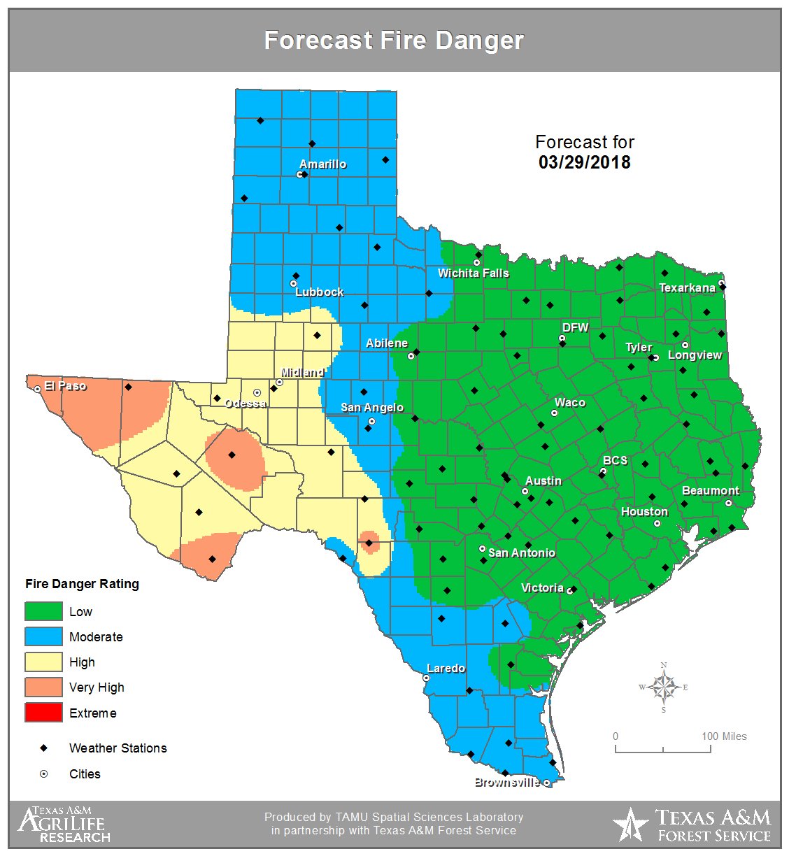 Texas A&M Forest Service The wildfire danger forecast for today